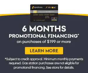 - Get 6 Months Promotional Financing on purchases of $199 or more with your Synchrony Bank Credit Card*
